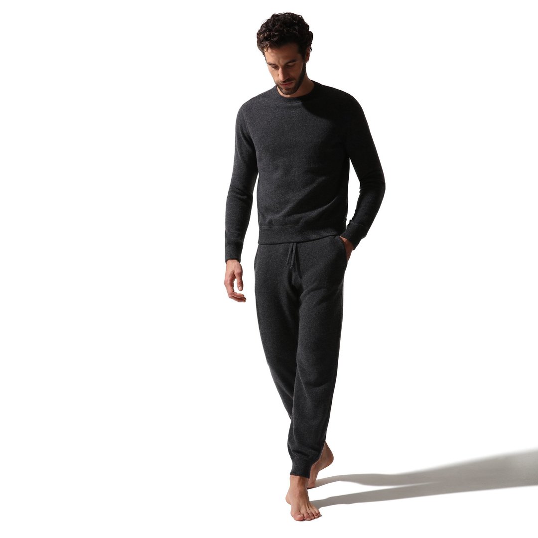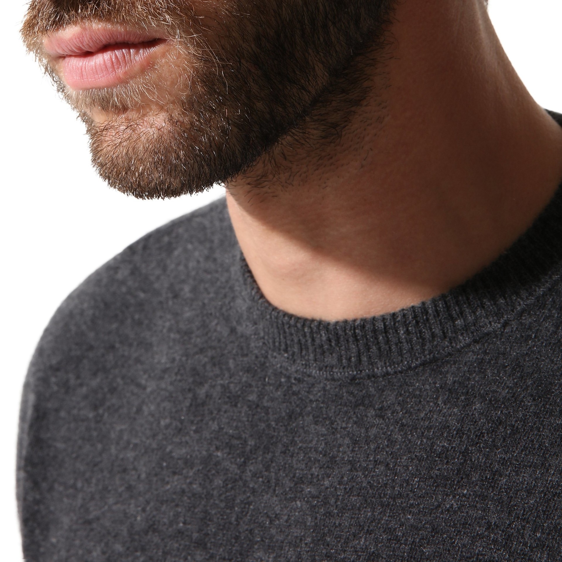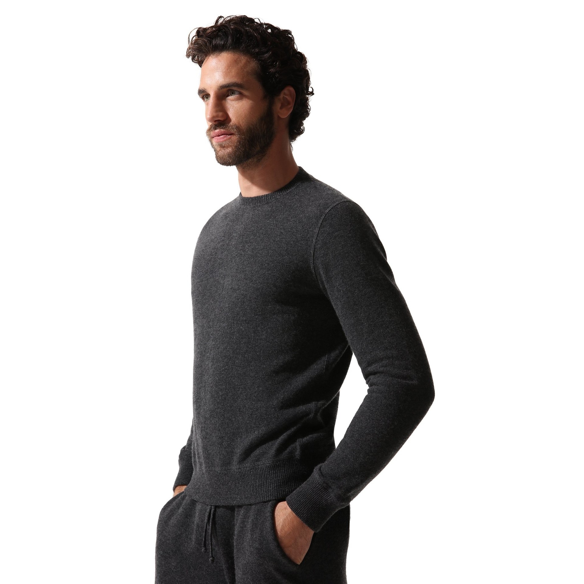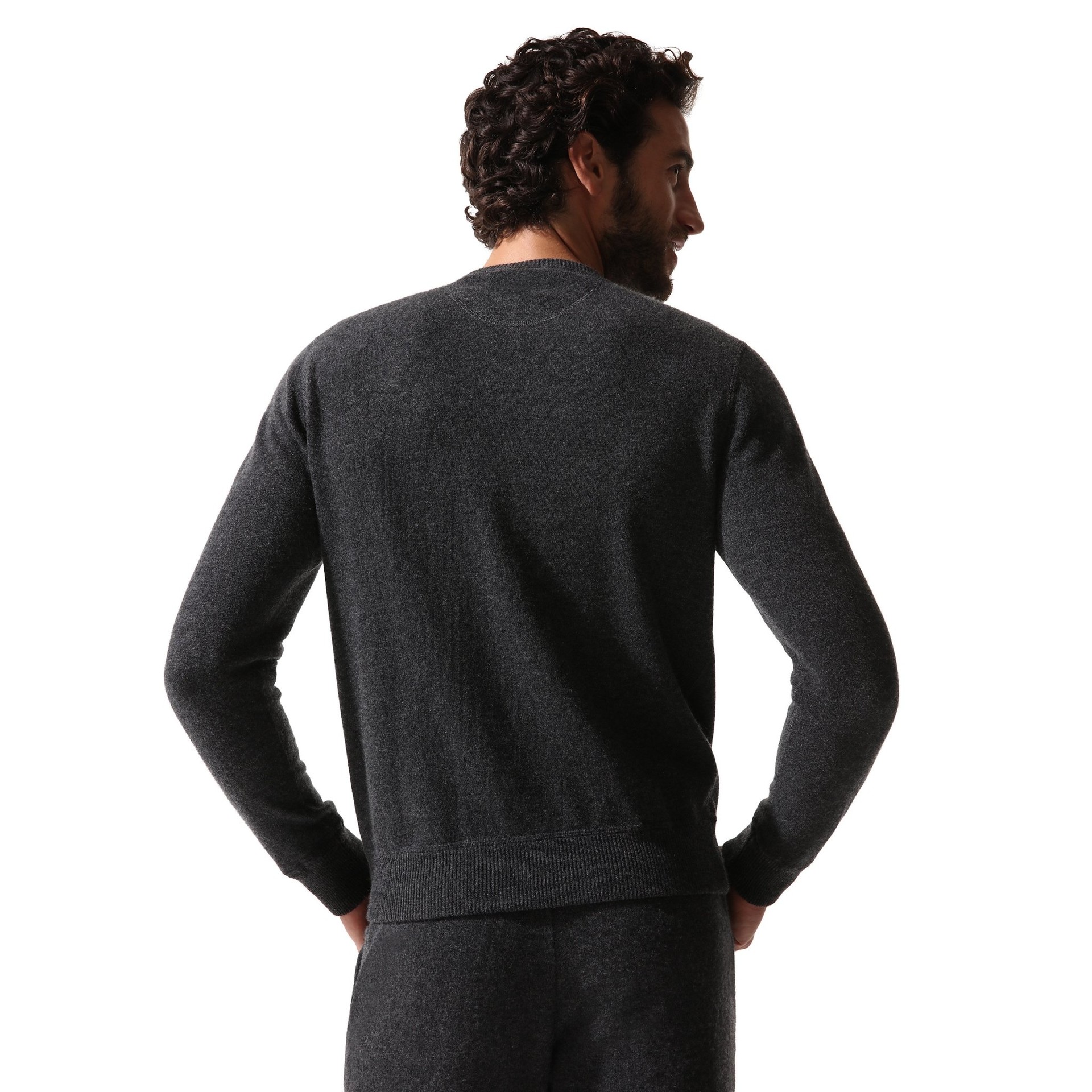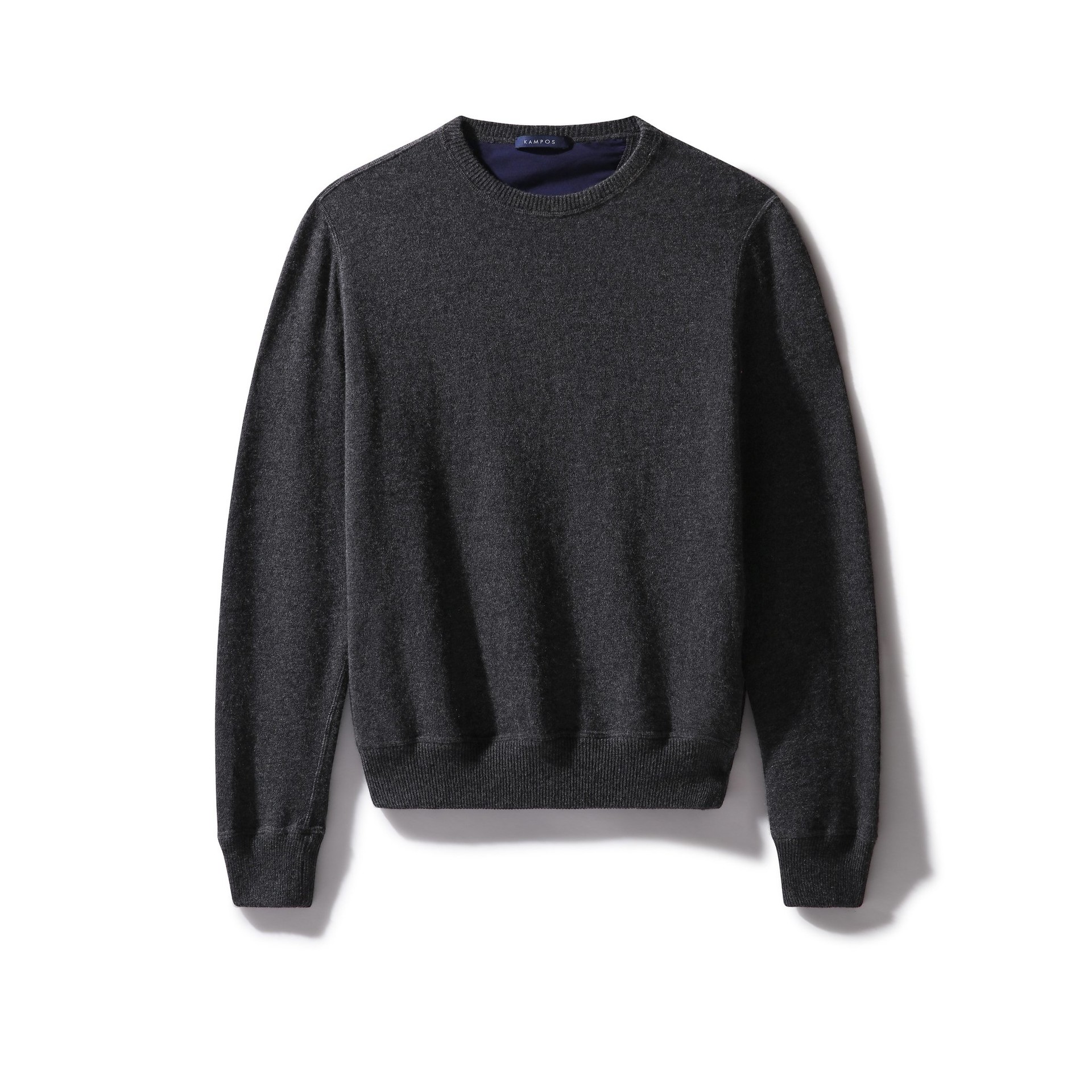 캄포스의 다크 그레이 캐시미어 점퍼는 지중해의 모래 호랑이 상어의 색상에서 영감을 받았습니다.