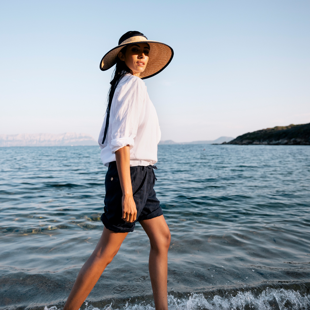 100% 유기농 린넨으로 제작되어 매우 편안하고 부드러우며 통기성이 좋아 해변가나 일상에서도 쾌적한 핏을 제공합니다.