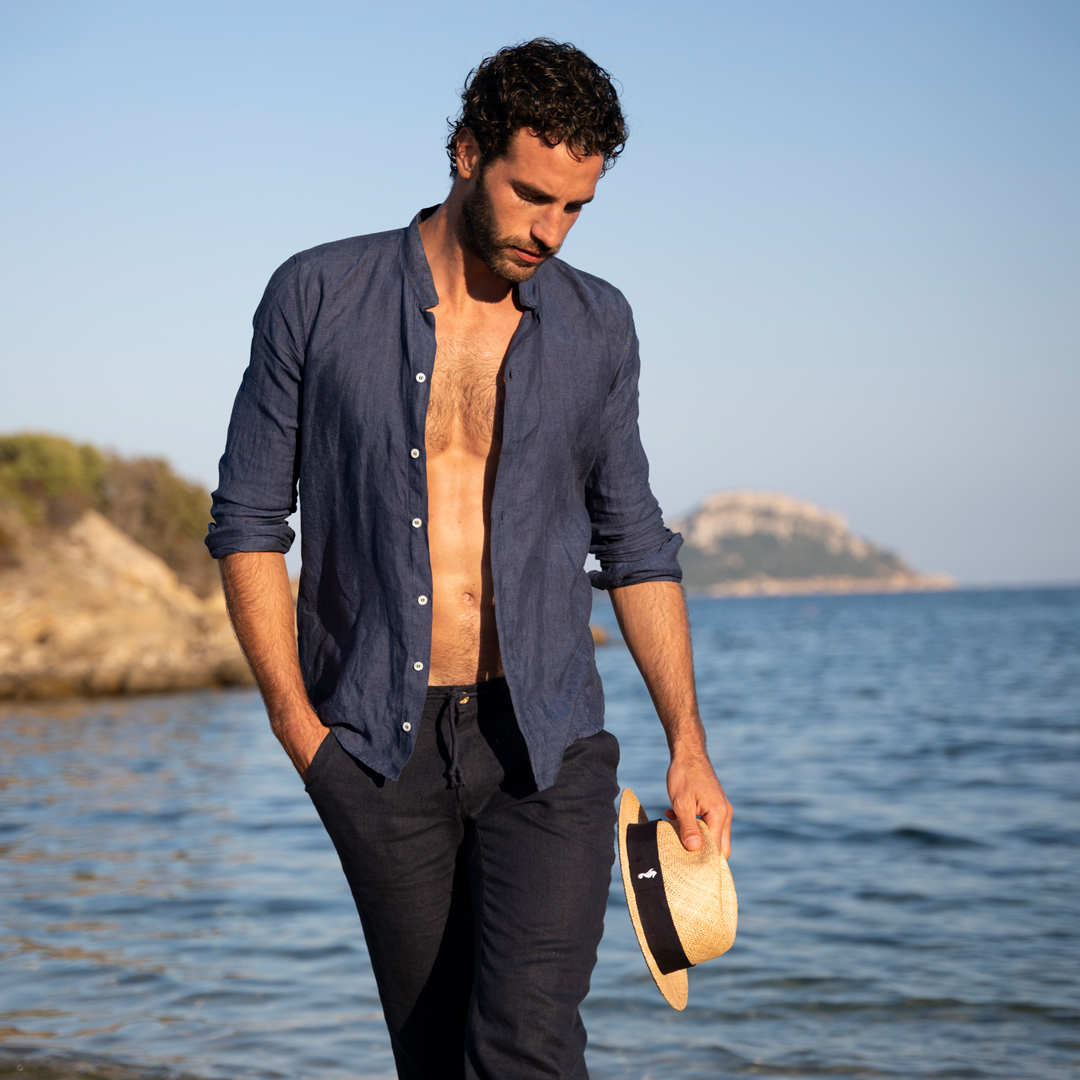 캄포스의 '린넨 팬츠 네이비'는 깊은 바다가 주는 신비로움에서 영감을 받았습니다.