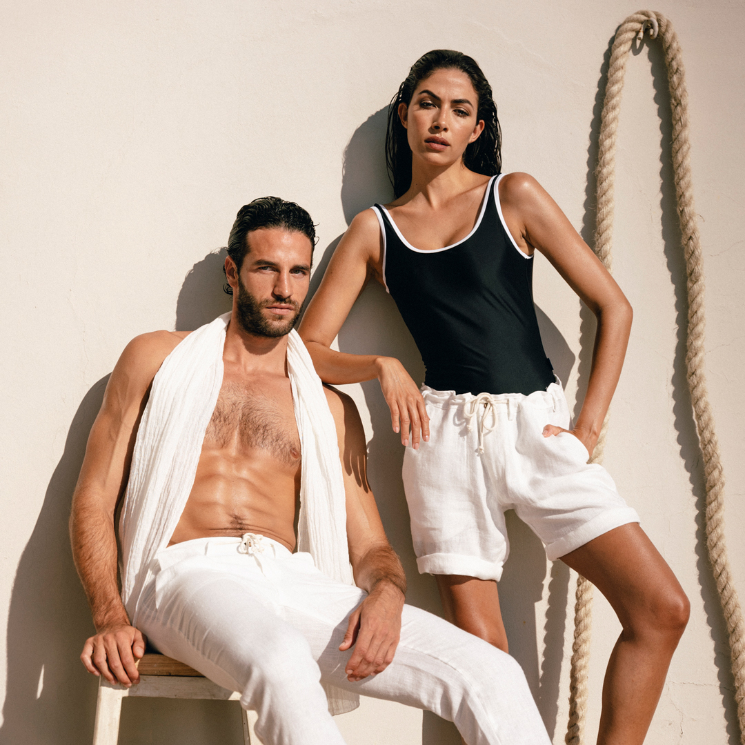 캄포스의 '린넨 버뮤다 쇼츠 샌드'는 스페인 남부의 황금빛 해변에서 영감을 받았습니다.