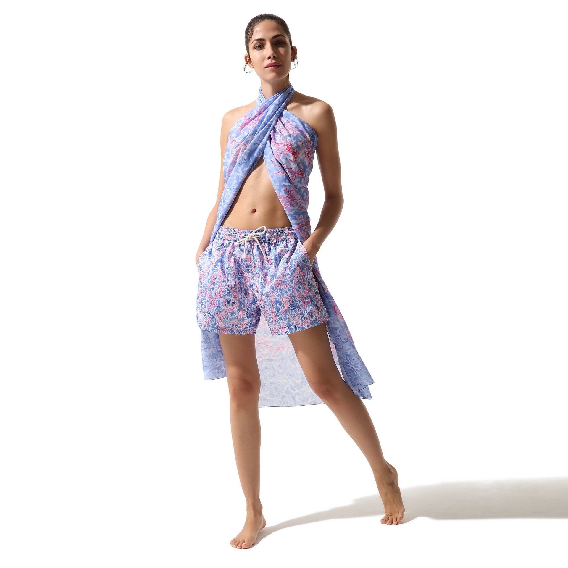 멸종 위기에 처한 아름다운 산호초로부터 영감을 받은 캄포스의 ‘파레오 코랄 포레스트 레드’ 는 100% 유기농면으로 만들어졌으며,