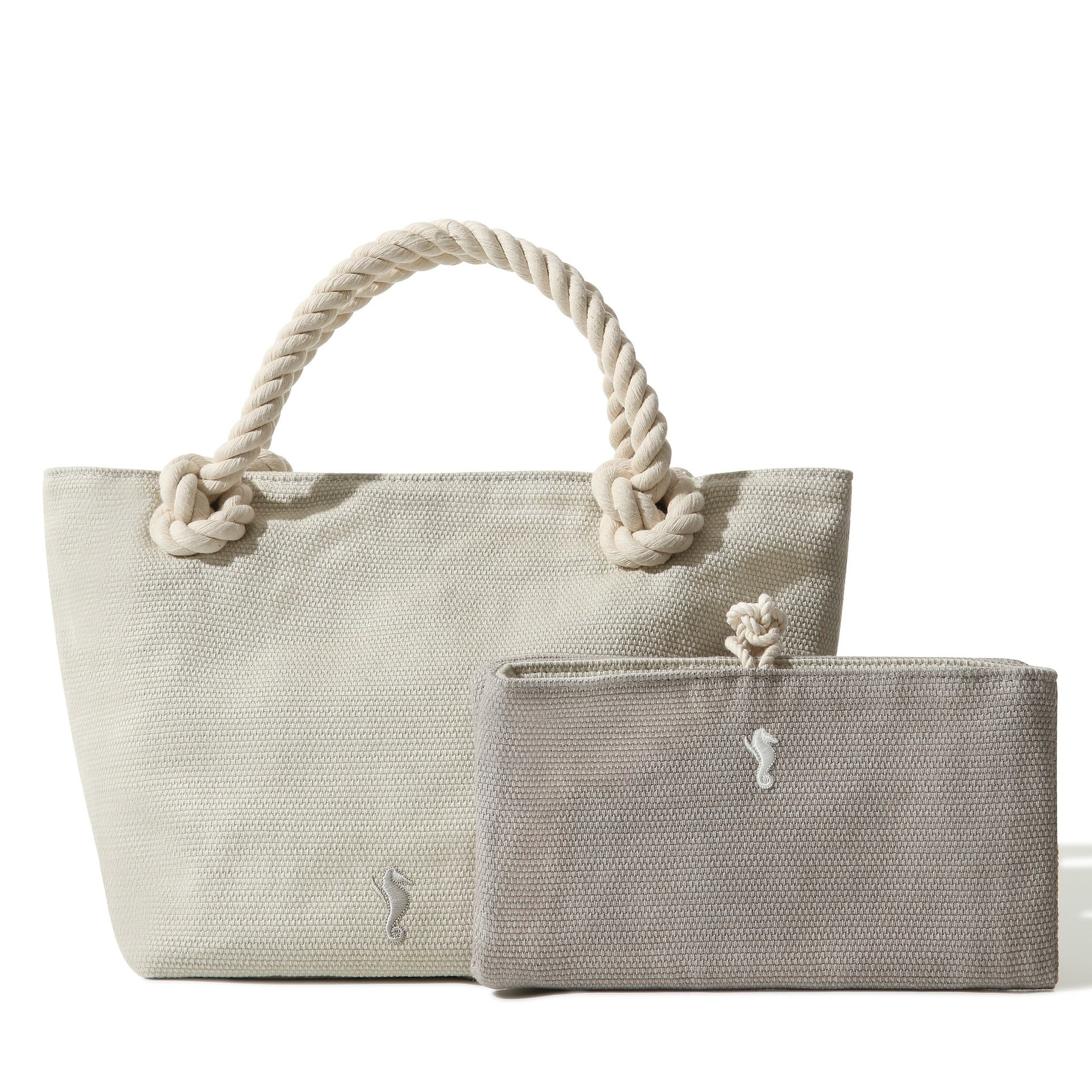 튼튼하고 내구성이 뛰어난 ‘토트백 샌드 화이트 스몰’ 은 해변과 일상에서의 멋진 하루를 위한 완벽한 액세서리입니다.